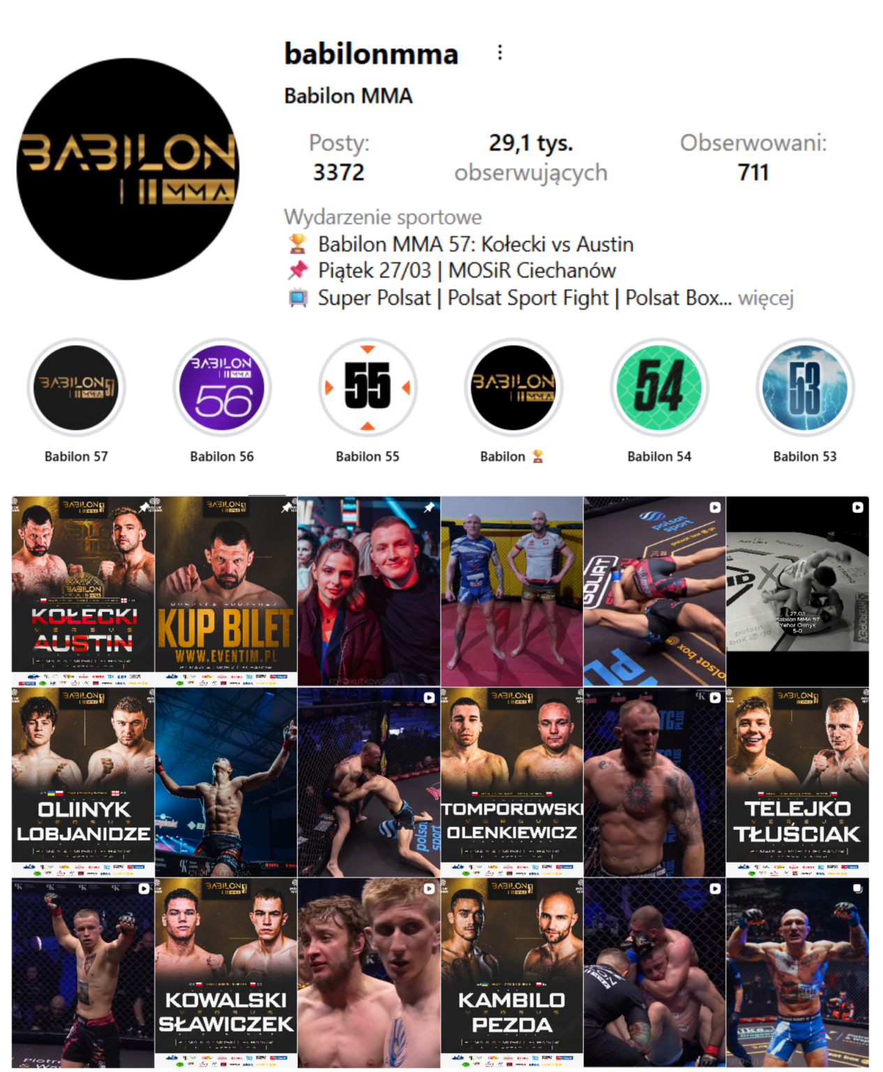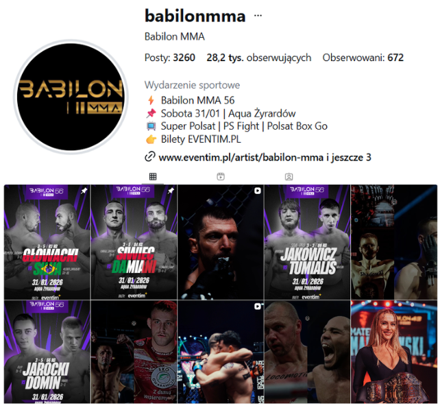 Grupa Babilon MMA to międzynarodowa federacja sportowa integrująca sportowców na najwyższym poziomie, dająca możliwości światowego rozwoju, promocji i monetyzacji ich sukcesów sportowych. Głównym zadaniem Spółki jest pozyskanie, wyszkolenie i prowadzenie zawodników na światowym poziomie, dając im wszelkie narzędzia zarówno trenerskie, sportowe jak i medialne, niezbędne do osiągnięcia planowanego sukcesu. Poprzez opracowanie planu aktywności sportowej, marketingowej dla każdego zawodnika, promocję w ogólnopolskiej stacji Polsat oraz kanałach tematycznych Polsatu oraz w usłudze Polsat Box Go, Babilon MMA daje możliwość osiągnięcia najwyższego stopnia promocji zawodników na poziomie narodowym i międzynarodowym.